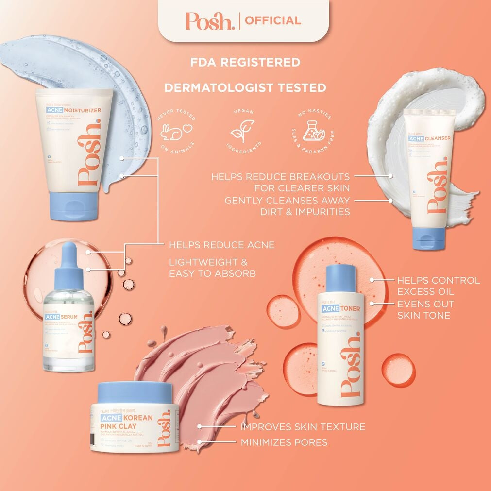 Breakouts showing up out of nowhere? Oily T-zone acting up? Skin looking dull, irritated, or uneven from our humid PH weather? Don’t stress, beshy! Your Posh Acne Complete Skincare Set is here. This 5-step routine is your all-in-one system for clearer, calmer, and more radiant skin.